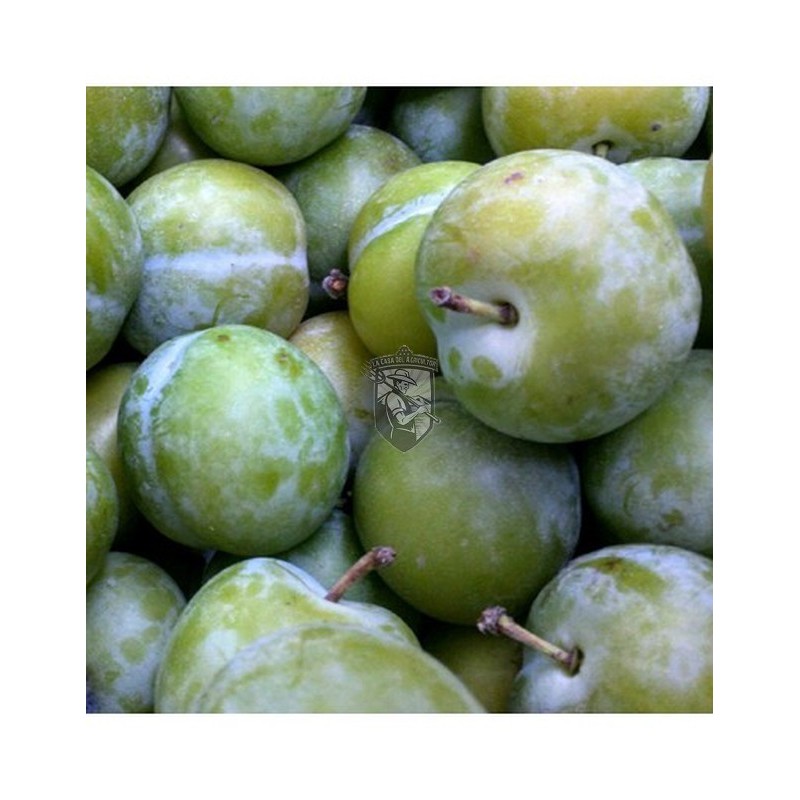 Frutos: La ciruela Reina Claudia verde es de calibre pequeño a medio y de forma redondeada. La piel es de color verde grisáceo o dorado. Su carne es verdosa o amarillo ámbar, de firmeza media, jugosa y agradable sabor dulce. La maduración se produce en agosto.