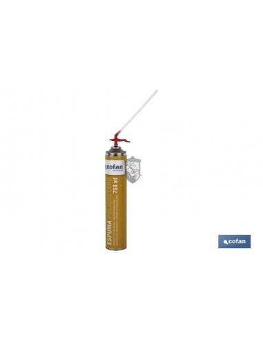 Espuma de poliuretano 750ml expansible 45 L de aplicación manual (cánula). Se utiliza para aislar, sellar o fijar marcos de ventanas o puertas, llenar huecos de diversas cavidades, tubos y conductos de aire, paneles de aislamiento, etc.