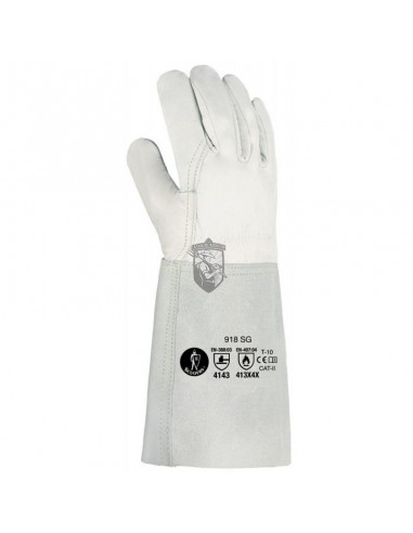 Guante piel manguito largo soldador TIG 35 cm 918SG