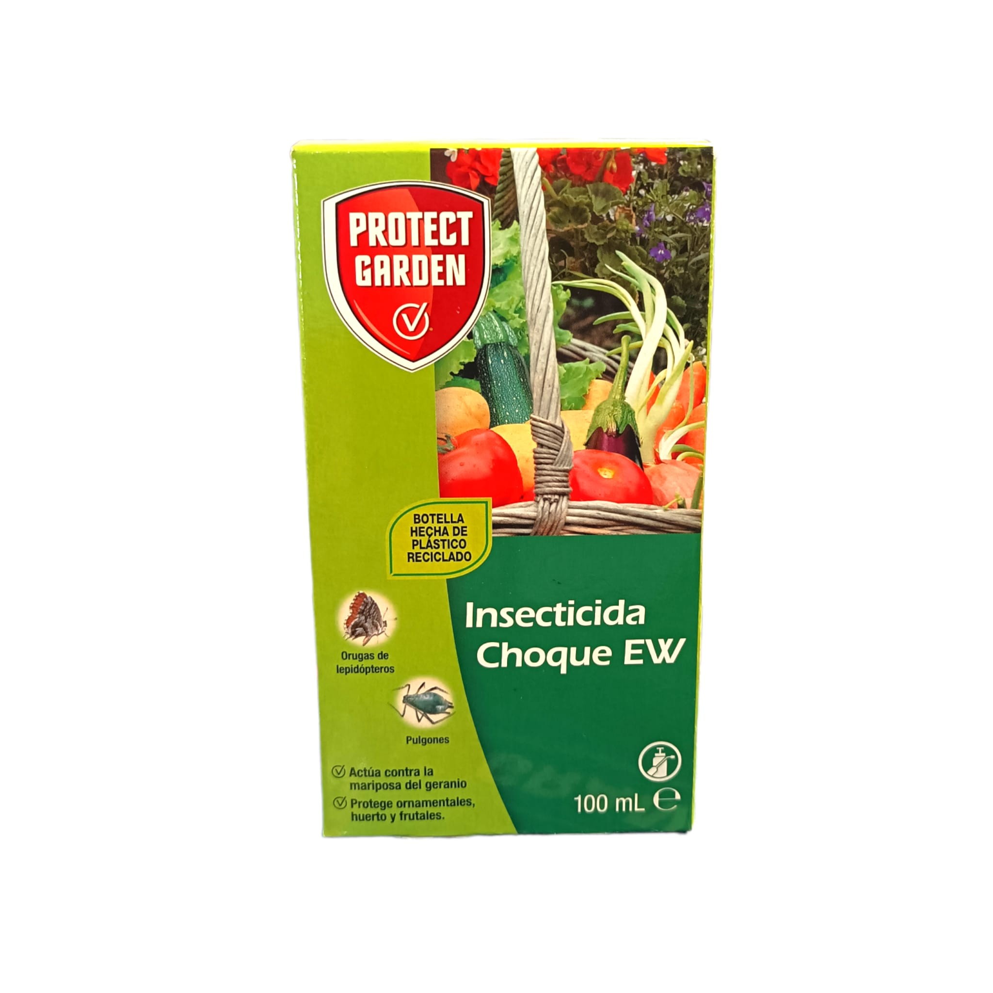 Protect Garden Insecticida Choque Ew es una solución insecticida a base de deltametrina de gran espectro, para controlar orugas y larvas en cultivos de plantas como geranio, frutas, verduras, ornamentales, entre otras.