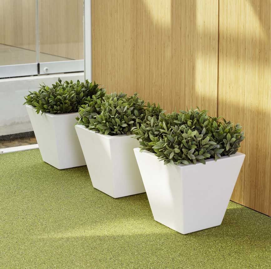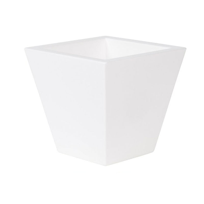 CLAVEL 30 (30x30x28 cm.) Es un macetero trapezoidal. Líneas básicas y texturizado en acabado liso. Ideal para plantas pequeñas. Color Blanco.